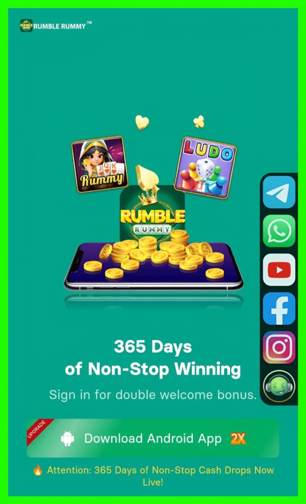 The Rumble Rummy App is a fast-growing online card gaming platform in India, offering real-cash rummy, teen patti, and multiple skill-based games. With smooth gameplay, instant withdrawals, and attractive bonuses, it has become a preferred choice for players who enjoy earning real money through gaming.