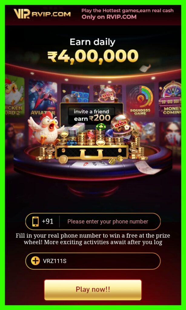RVIP Game is an online earning and gaming platform where users can play multiple skill-based and entertainment games to win real cash rewards. The platform offers Instant Withdrawal, Referral Bonus, and Daily Rewards, making it popular among Indian players. Here is a complete step-by-step review.