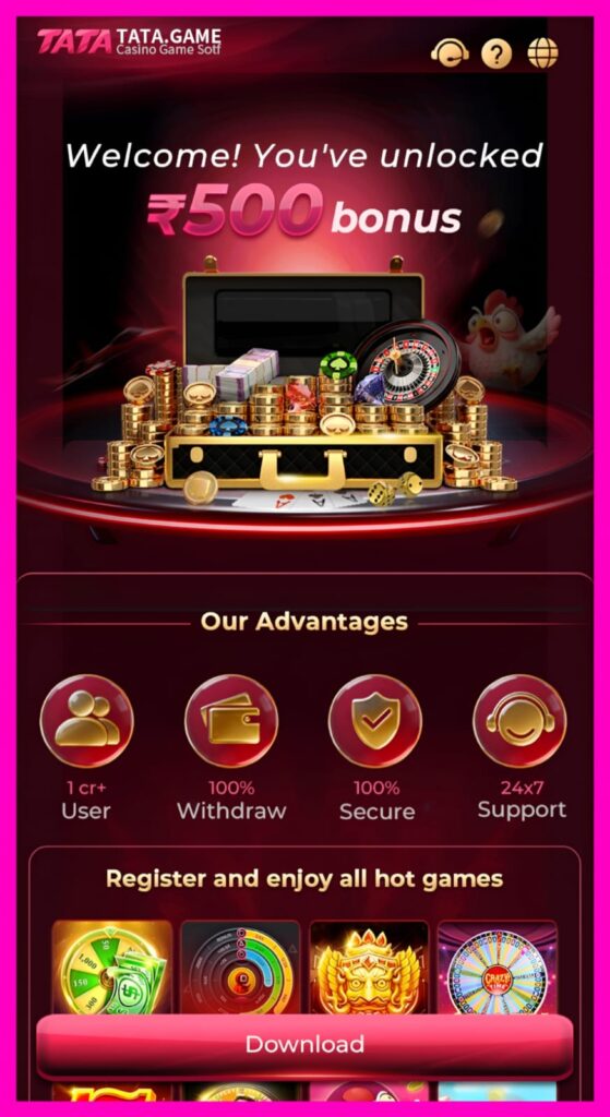 TATA Game India ka popular online earning application hai jisme users realtime games khelkar paise kama sakte hain. Is app me secure UPI wallet, instant withdrawal, free bonus, VIP rewards aur 20+ high-quality games available hain. Aap sirf mobile number se login karke earning start kar sakte ho. App beginners aur pro players dono ke liye perfect hai.